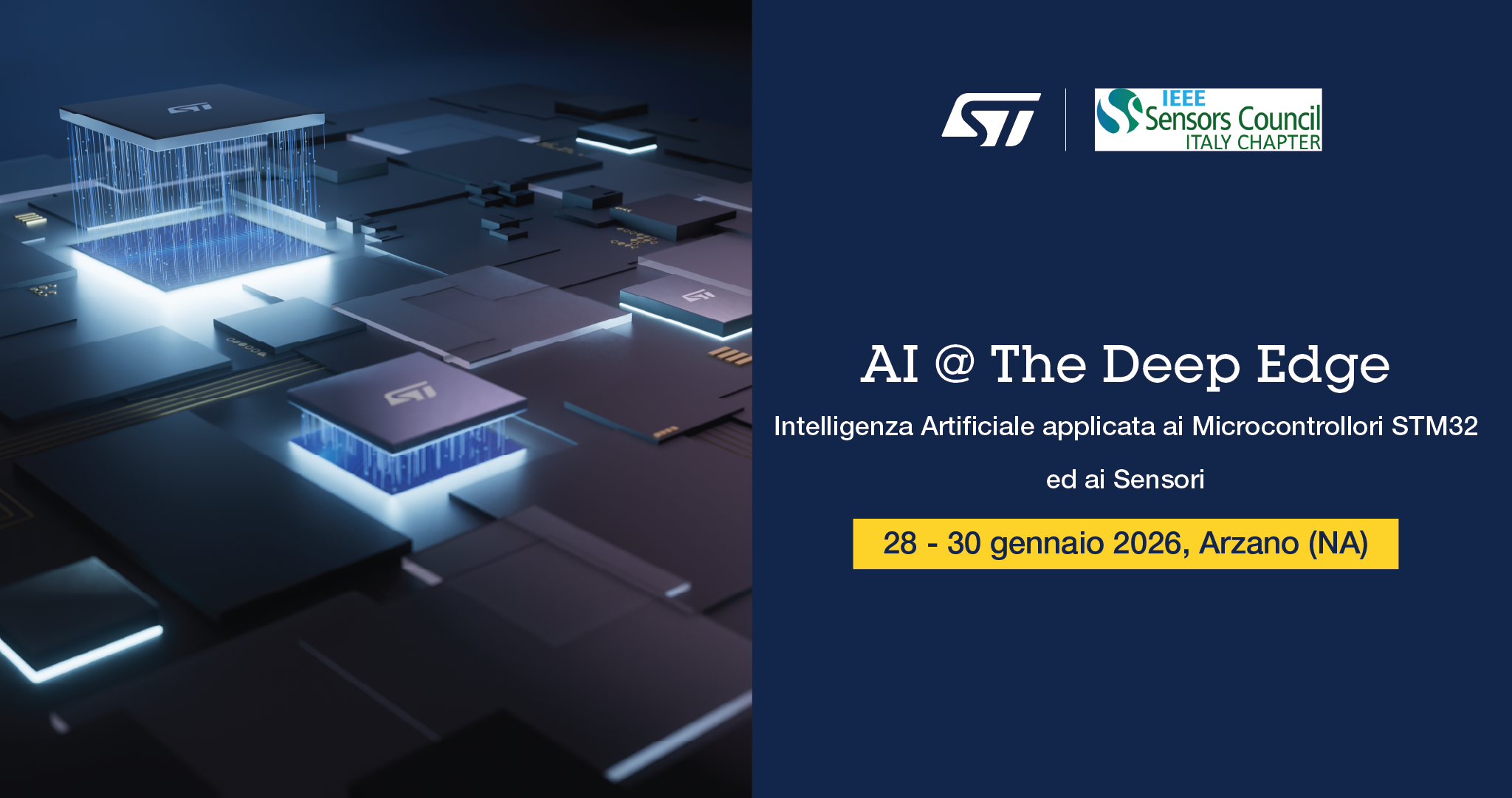 Il seminario hands-on in presenza di STMicroelectronics intende affrontare il complesso tema dell’Intelligenza Artificiale from scratch. Attraverso un percorso didattico disegnato ad-hoc per neofiti, Davide Ruggiero (Senior Advanced Research Engineer), condurrà i partecipanti attraverso questo affascinante ed al contempo complesso mondo dell’Intelligenza Artificiale fornendo le necessarie nozioni teoriche e pratiche che consentiranno agli stessi di progettare e addestrare Reti Neurali Artificiali. Tali modelli saranno poi implementati su microcontrollori della famiglia STM32.