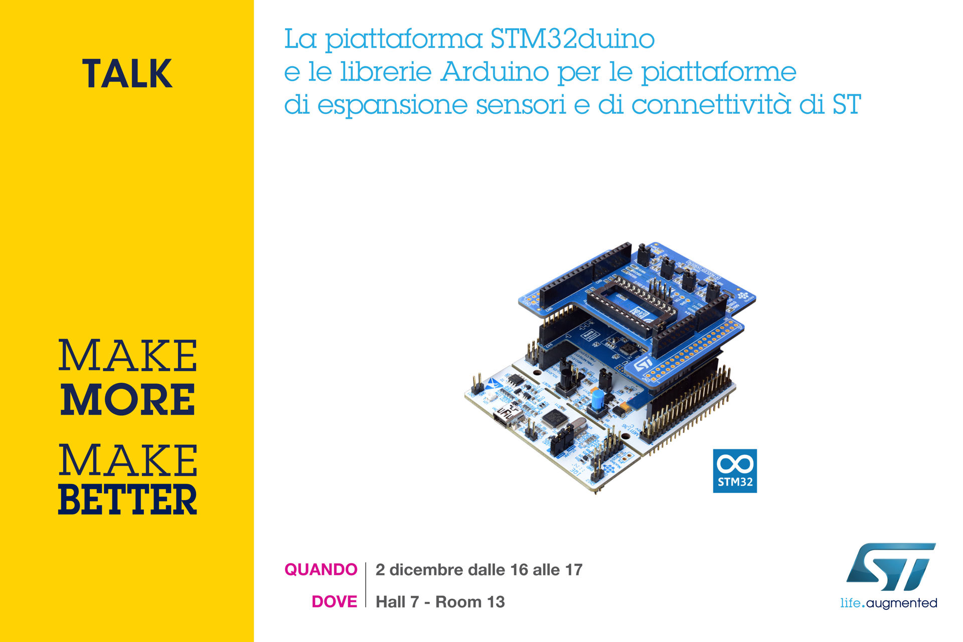 Alla Maker Faire Rome 2017 Carlo Parata, Senior System Engineer di STMicroelectronics, insegnerà ad usare le librerie STM32duino, community che promuove l’utilizzo delle piattaforme ST nell’ambiente di sviluppo Arduino.